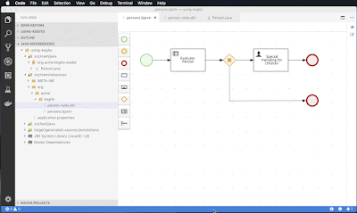 • Tooling to build processes and rules for cloud-native services is embedded wherever required. For example, the Kogito BundleVSCode extension enables you to edit your Business Process Model and Notation (BPMN) 2.0 business processes and Decision Model and Notation (DMN) decision models directly in your VSCode IDE, next to your other application code.